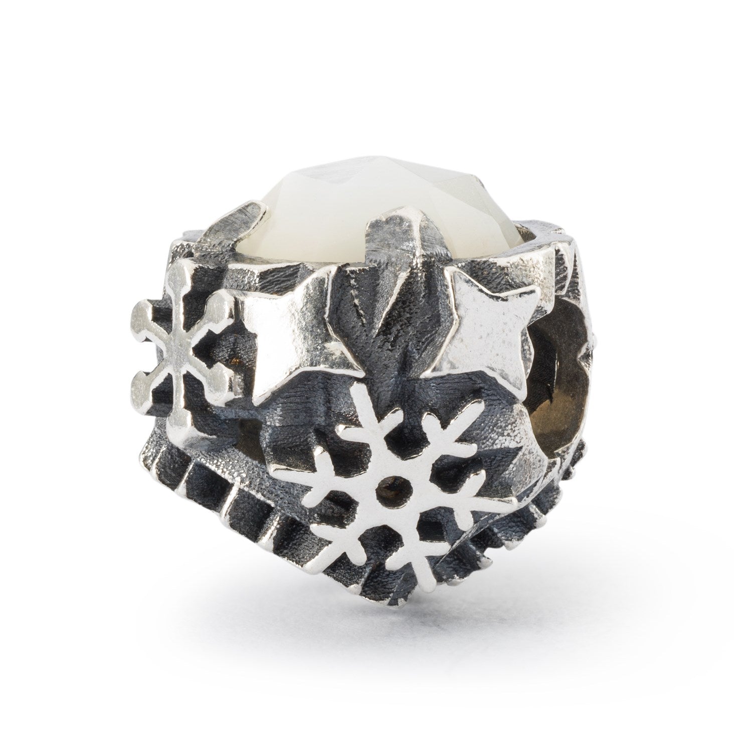 Viên bead này ôm lấy viên ngọc trai Mother of Pearl, trang trí đẹp mắt với những bông tuyết có hình dạng khác nhau và những ngôi sao sáng bóng.