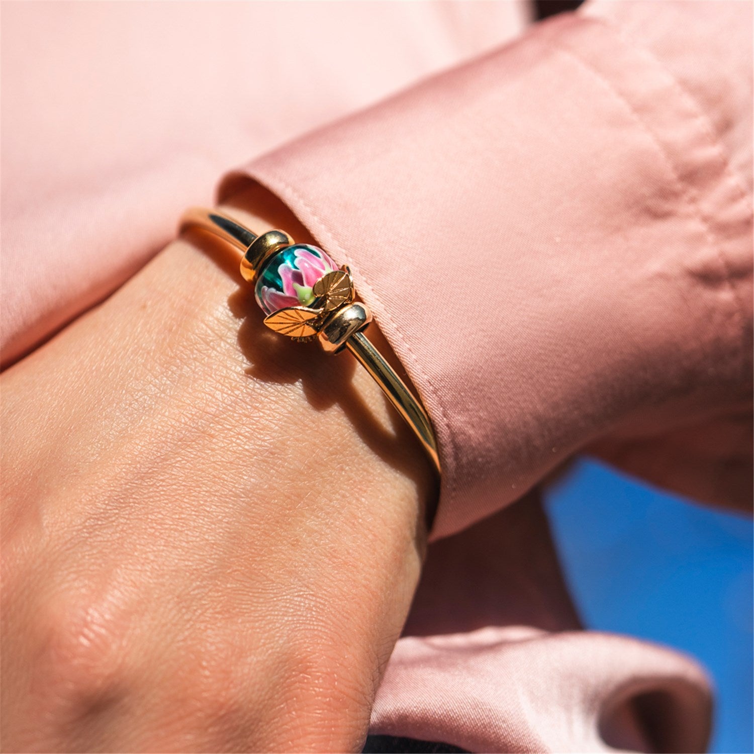 This limited edition glass bead introduces an entirely new silhouette to the Trollbeads collection, Rondo beads. Fuller and more rounded than existing formats, its softly contoured shape creates a fresh expression on the bracelet.